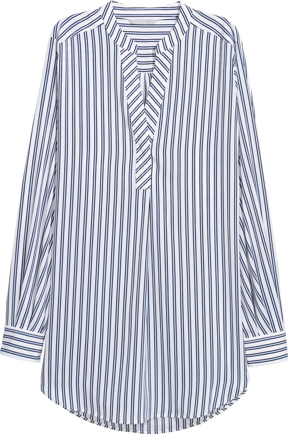 Блузка из креповой ткани с низким воротником стойкой. Треугольный вырез горловины и длинные широкие рукава с манжетами на пуговице. Скругленный нижний край, по бокам разрезы.Hennes & Mauritz (H&M) — известный шведский бренд, который производит одежду, обувь, нижнее белье, косметику, аксессуары в невысоком ценовом сегменте. Над коллекциями бренда H&M работают креативные дизайнеры, а в производстве используются современные технологии. Сегодня H&M — это самая крупная сеть в Европе. Ее покупатели – это молодые люди, которые хотят недорого и стильно одеваться, выглядеть на все 100% и с каждой новой коллекцией менять свой образ.