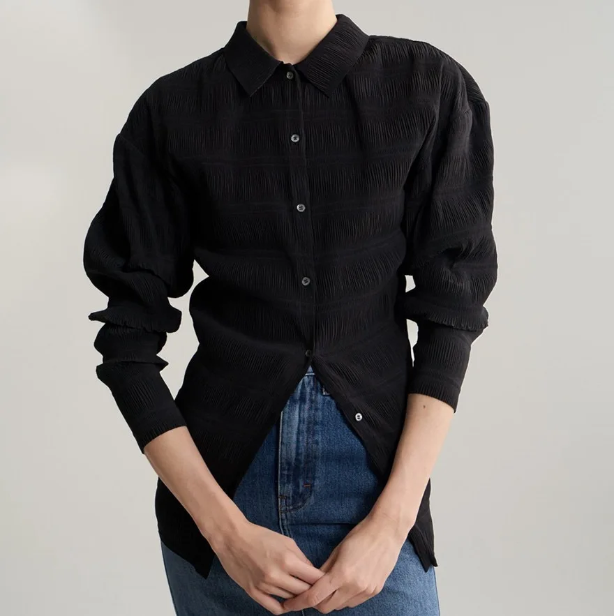 Блузка Totem * MY women, однотонная Повседневная блузка из полиэстера со складками и рукавами-фонариками