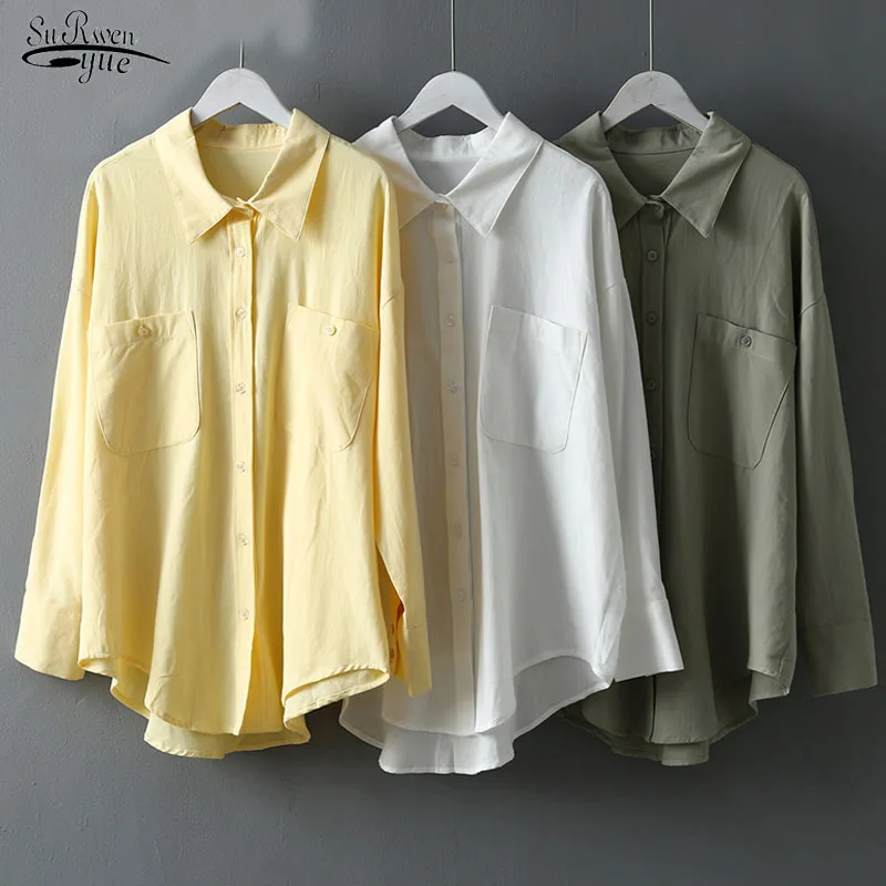 Блузы женские 2021 корейские повседневные Элегантные Топы и блузка рубашка однотонные на пуговицах Свободные шикарные новые рубашки с длинн...