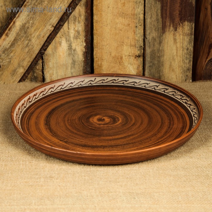 Блюдо для пиццы, роспись ангобом, декор, 32.5 см