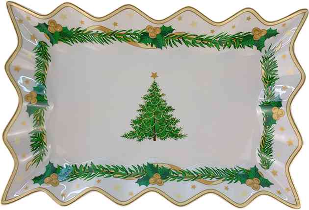 Блюдо новогоднее, 1шт, прямоугольная, посуда для взрослых, размер: 36*24*4cм, цвет: белый, зеленый, золотой.