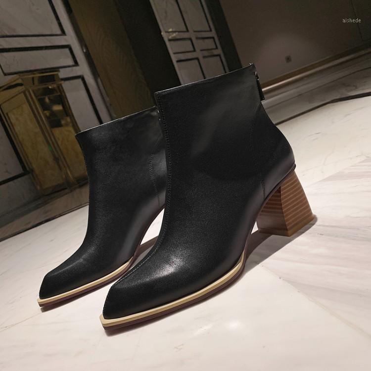 MLJUESE 2020 women ankle boots cow leather winter short plush zippers pointed toe high heels female boots party dress size 34-401, Beige