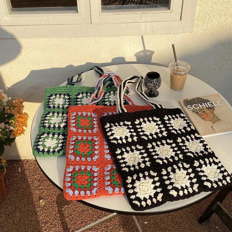 Богемные вязаные крючком женские сумки на плечо, вязаная Большая вместительная сумка-тоут, повседневные женские сумки, большие яркие летние пляжные сумки