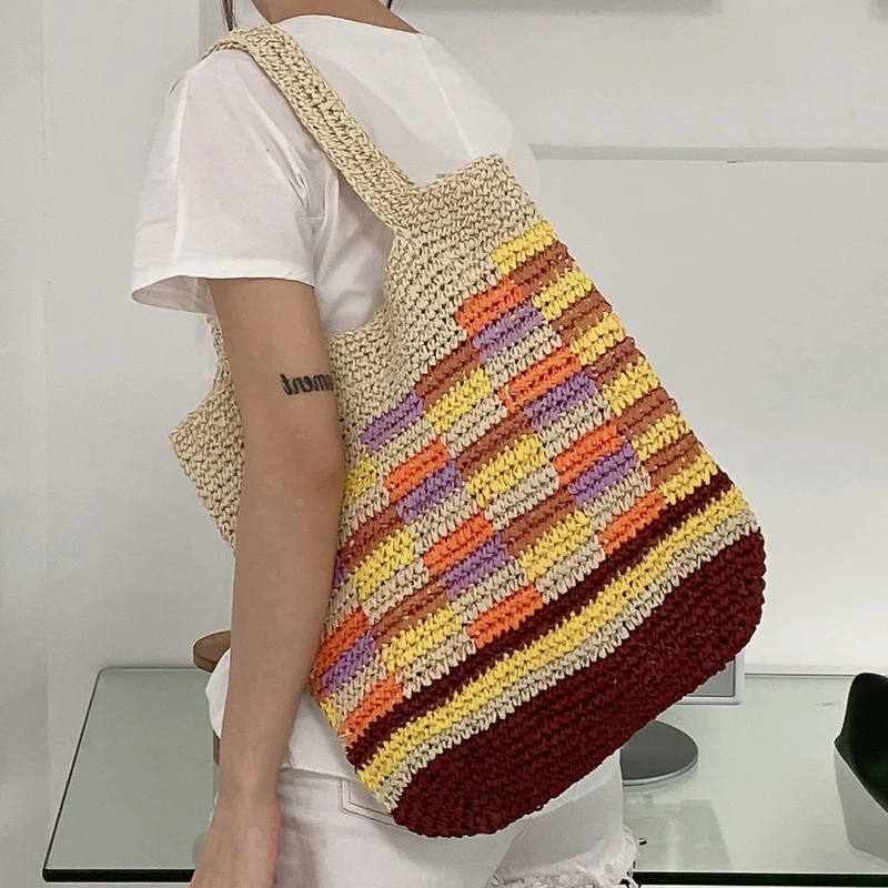 Богемные тонкие пляжные сумки для женщин, роскошные дизайнерские сумки и кошельки, новинка 2023 года, в папирусе, в полоску, с вырезами, большой вместимости