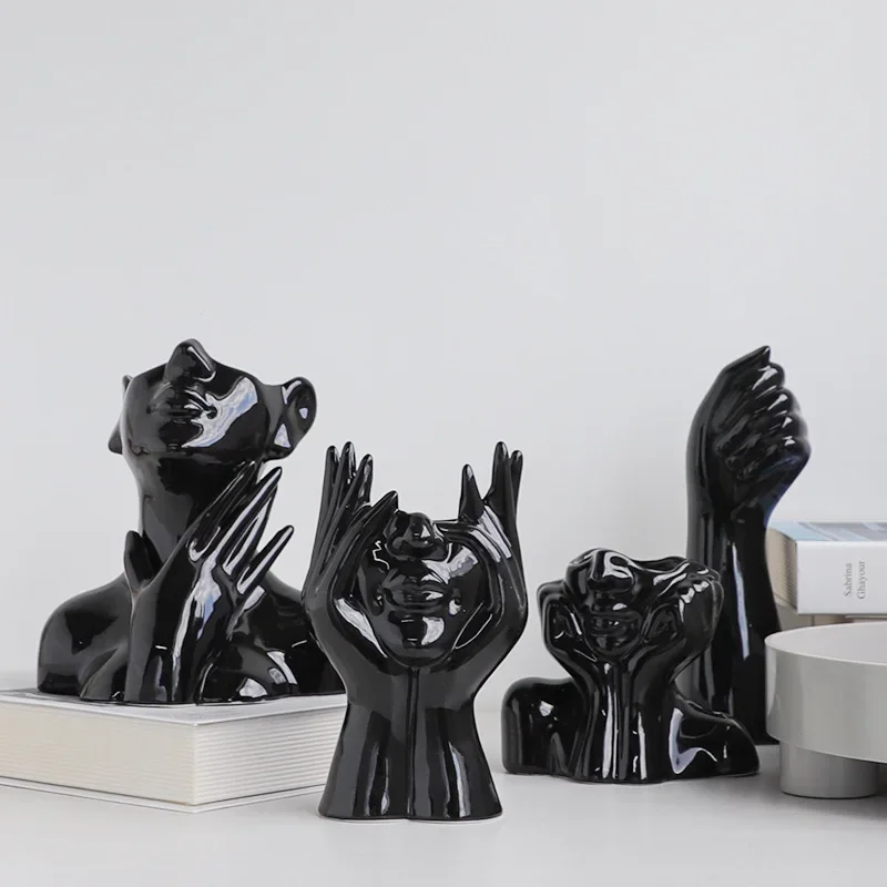 Боди-арт в скандинавском стиле, черная керамическая декоративная ваза, роскошная Настольная Ваза для гостиной