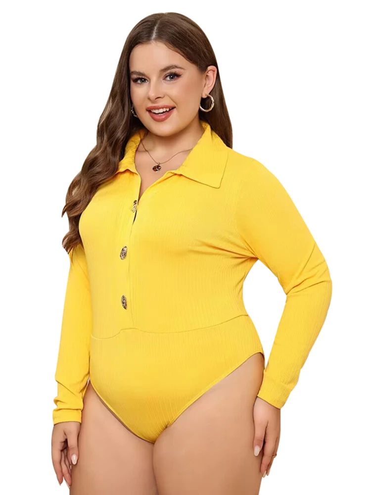Боди женское однотонное с длинным рукавом и высокой талией, батальных размеров