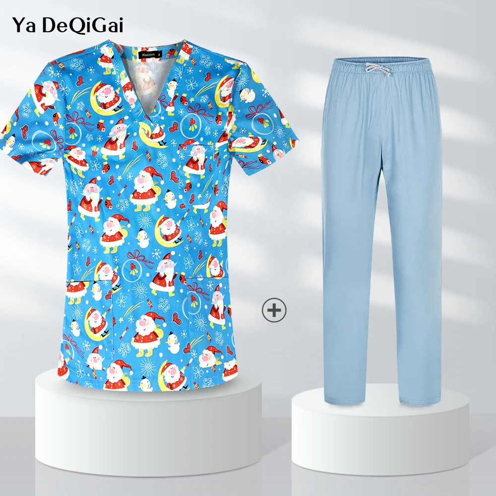 Унисекс, Рождественская медицинская хирургическая форма, аптека, больница, скрабы, топ, дышащая, Рабочая Униформа из чистого хлопка для сало...