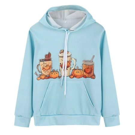 EnJoCho Boys/Girls Sweater Autumn and Winter Cute Cartoon Pumpkin Beverage Print Long Sleeve Hooded Sweater Party Birthday Halloween Role Play Outfits Holiday Party Boy Girl Cute Clothing