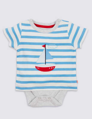 Боди-футболка из чистого хлопка "Кораблик" в полоску