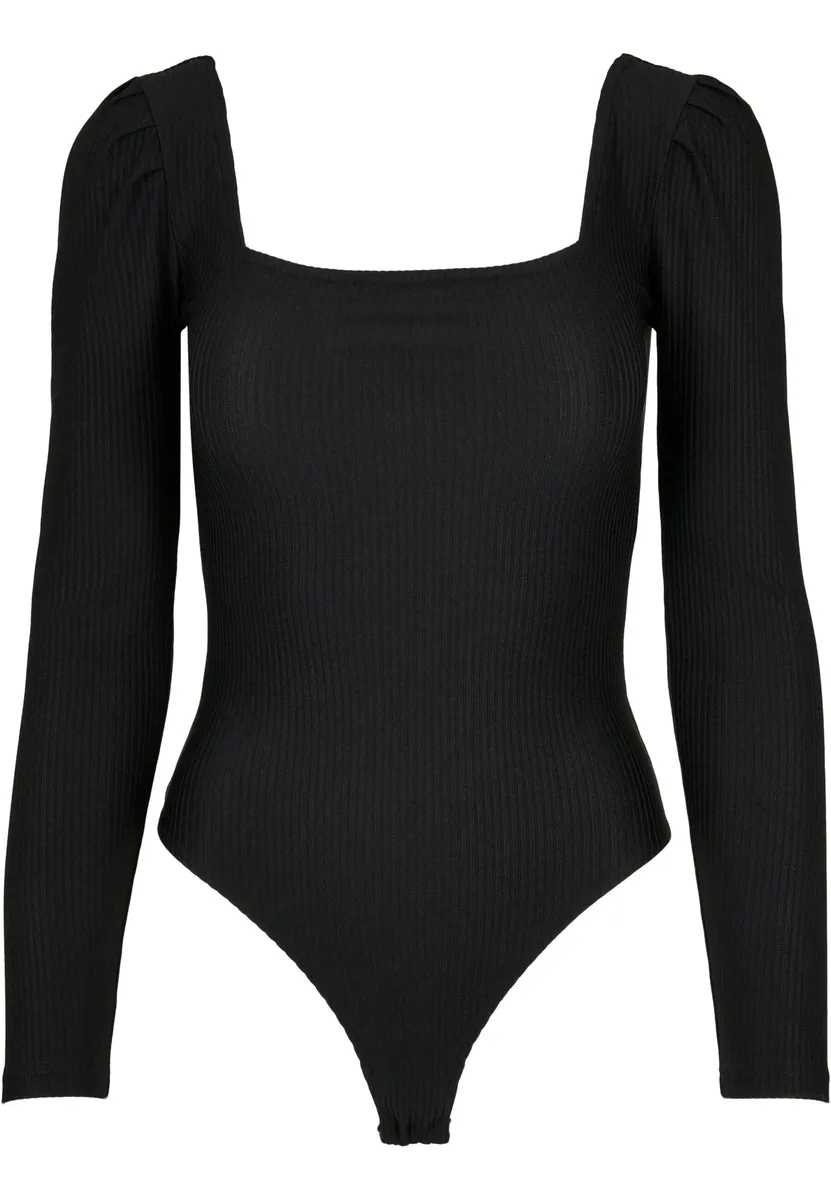 Боди URBAN CLASSICS " Urban Classics Ladies Женское боди в рубчик с пуховыми рукавами LS", черный