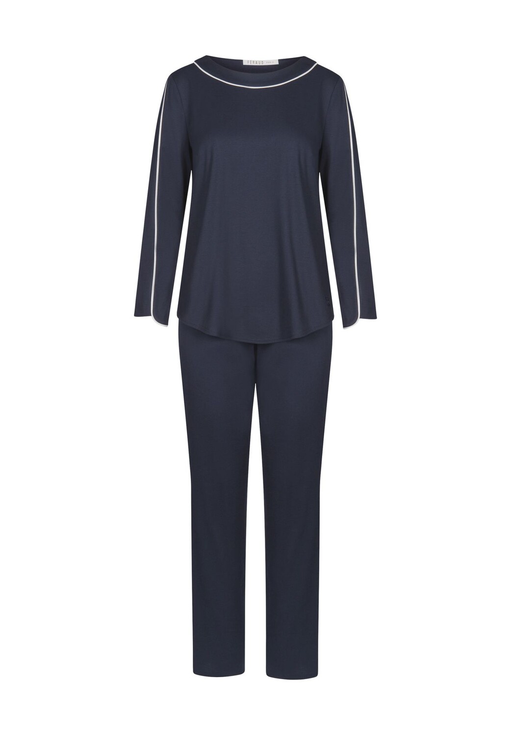 Высококлассные хлопковые пижамы с вырезом «лодочка» для женщин Louis Féraud, темно-синий
