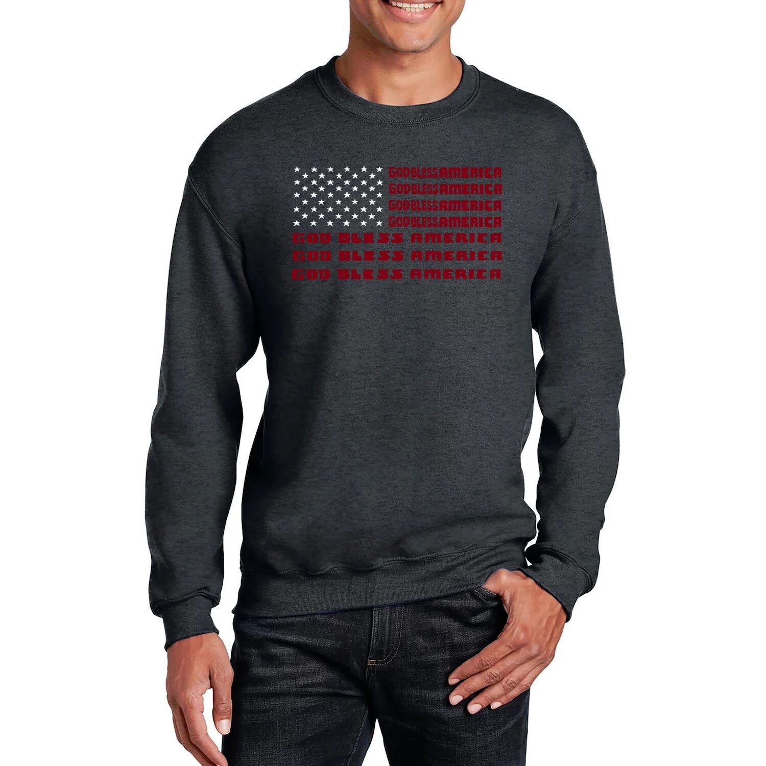 Боже, благослови Америку — мужская толстовка с круглым вырезом Word Art LA Pop Art