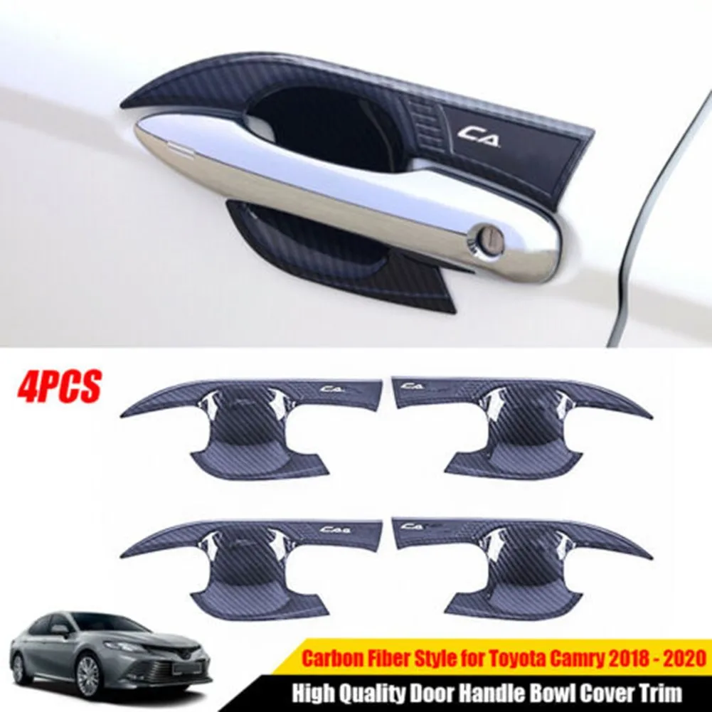 Боковая дверная ручка из углеродного волокна, чаша, 4 шт., для TOYOTA Camry 2018-2021, углеродное волокно, АБС, боковая дверная ручка, крышка чаши, отделк...