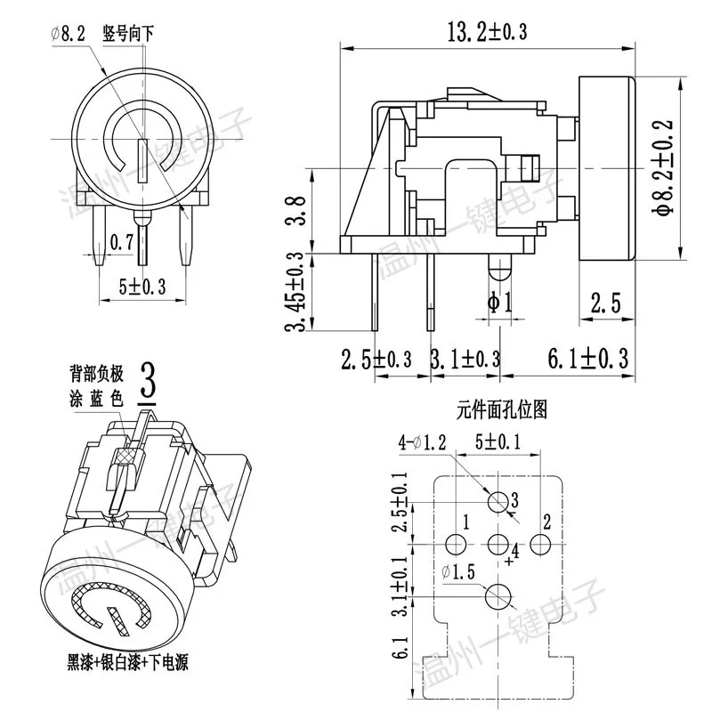Боковой выключатель питания TS-H016 со светодиодной подсветильник кой и колпачком