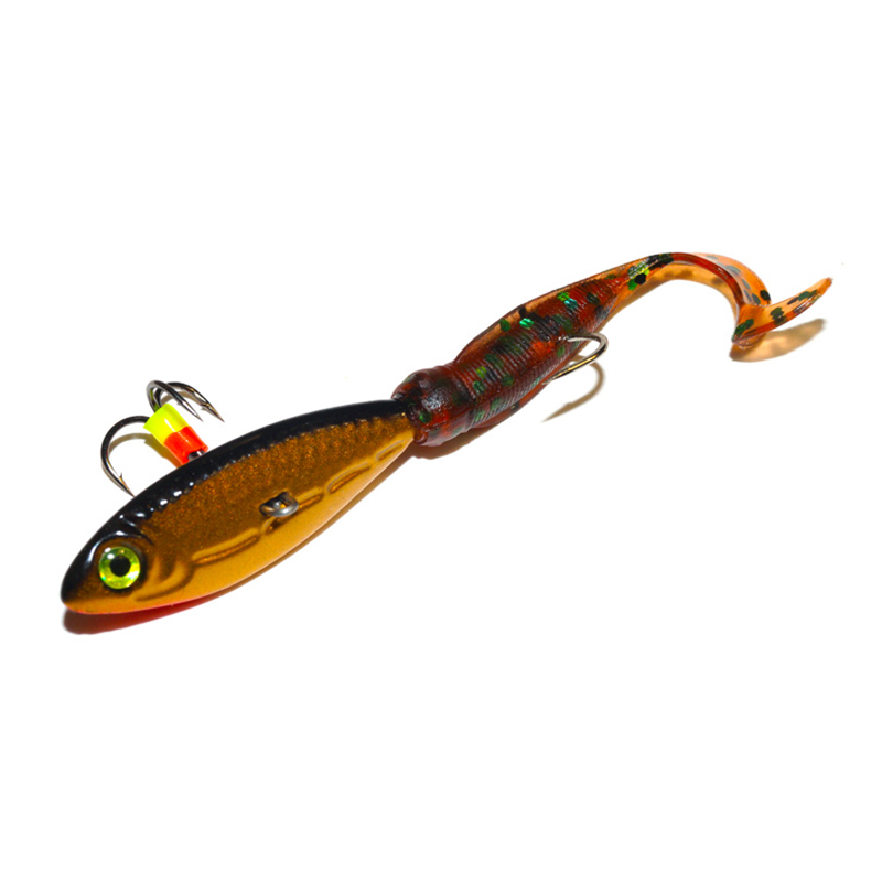 Бокоплав с твистером можно отнести к виду горизонтальных блесен или к виду плоского балансира. Приманка может использоваться как самостоятельно, так и в оснащении с горизонтальной подвеской: крючком или тройником. В задней части «Бокоплав» имеет тройник фирмы «Gamakatsu» или «Owner» с размещенной не нем съедобной резиной от «ASL». В носовой части «бокоплава» крючок отсутствует. В работе приманка очень напоминает движения раненой рыбки, что провоцирует хищника на атаку. ВНИМАНИЕ!!! Цвет и форма твистера может отличаться от изображенных на фото