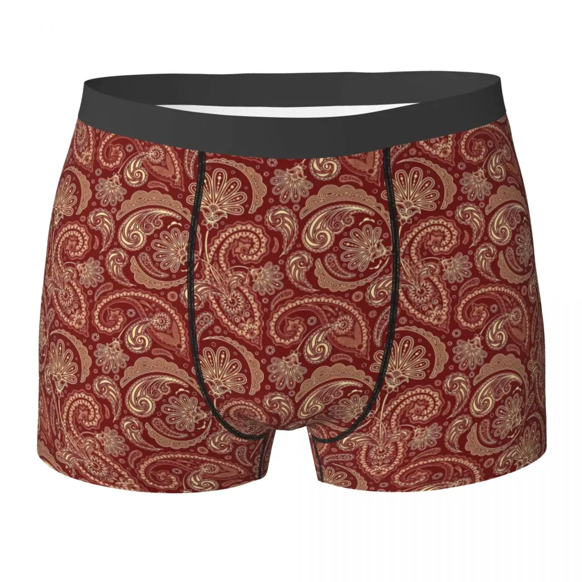 Боксеры мужские с винтажным принтом, нижнее белье с красными Пейсли шортами, эластичное нижнее белье «сделай сам», большие размеры 2XL