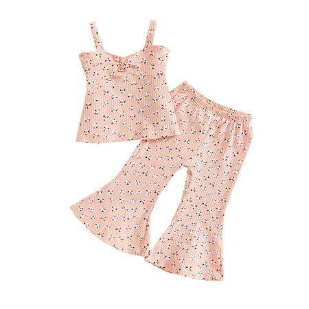 TheFound Toddler Kids Baby Girls Clothes Floral Print Cami Tank T-Shirt Vest Tops Pants Set Summer Outfits