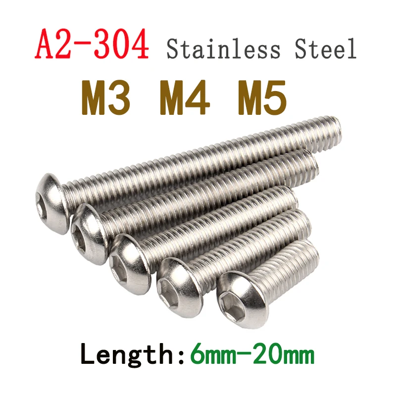 Болты с круглой головкой из нержавеющей стали M3 M4 M5 304 A2, 10/30/50 шт.
