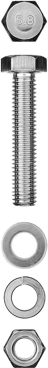 Болт (DIN933) в комплекте с гайкой (DIN934), шайбой (DIN125), шайбой пруж. (DIN127) Зубр 303436-06-050, М6, 5 см, 933 DIN, 6 мм, оцинкованная сталь, 7 шт., фасовка (303436-06-050), 303436-06-050