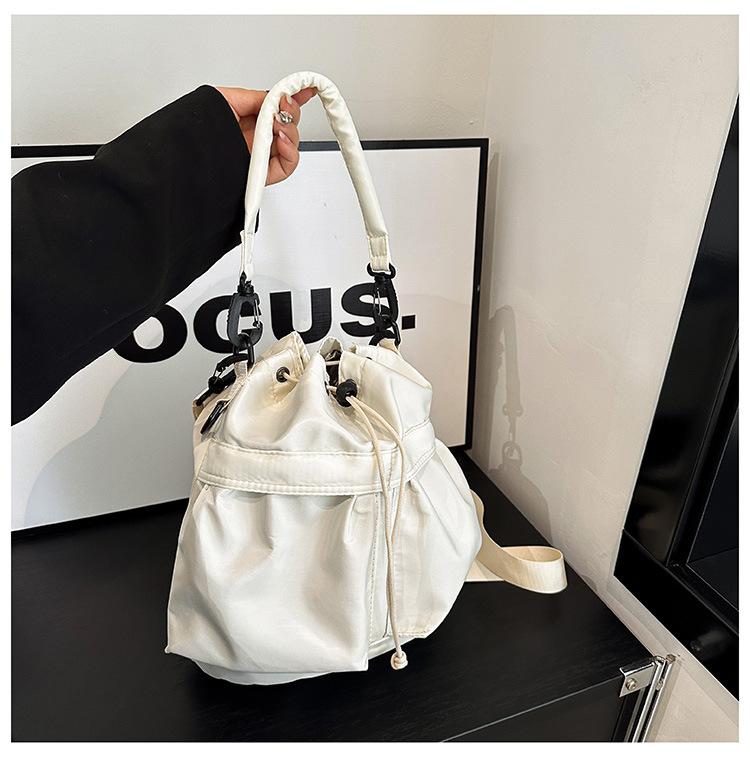Большая вместимость, легкая портативная нейлоновая сумка-ведро, женская модная сумка-мессенджер через плечо, повседневная универсальная плиссированная сумка со шнурком белый