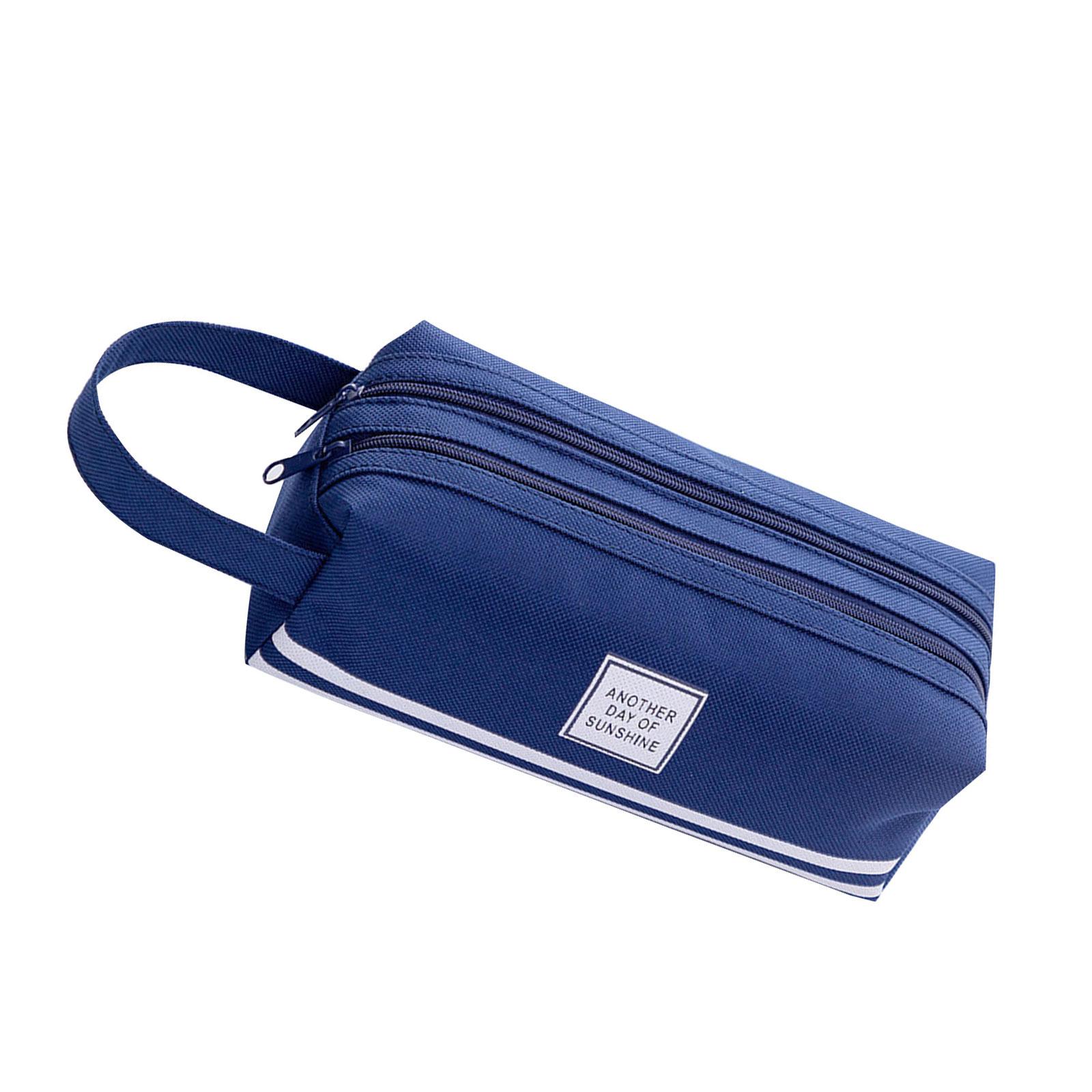 Большая вместимость пенала для ручек и карандашей, дорожная сумка для карандашей, холщовые пеналы, дорожные косметички для студенток и женщин, школ темно-синий