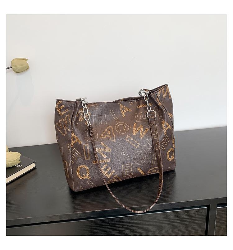 Большая вместительная женская сумка весна-лето 2024, новая трендовая модная сумка-тоут, портативная универсальная сумка через плечо для поездок на работу темно-коричневого