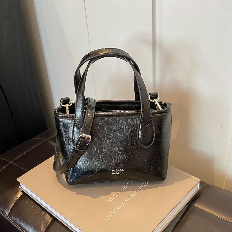 Большая вместительная женская сумка 2024 года, летняя новая фактурная сумка через плечо, модная персонализированная косая сумка-ведро чёрный