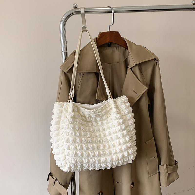 Большая вместительная модная плиссированная сумка через плечо, летняя новая модная сумка через плечо 2024 года в корейском стиле, простая повседневная сумка-тоут в иностранном стиле белый