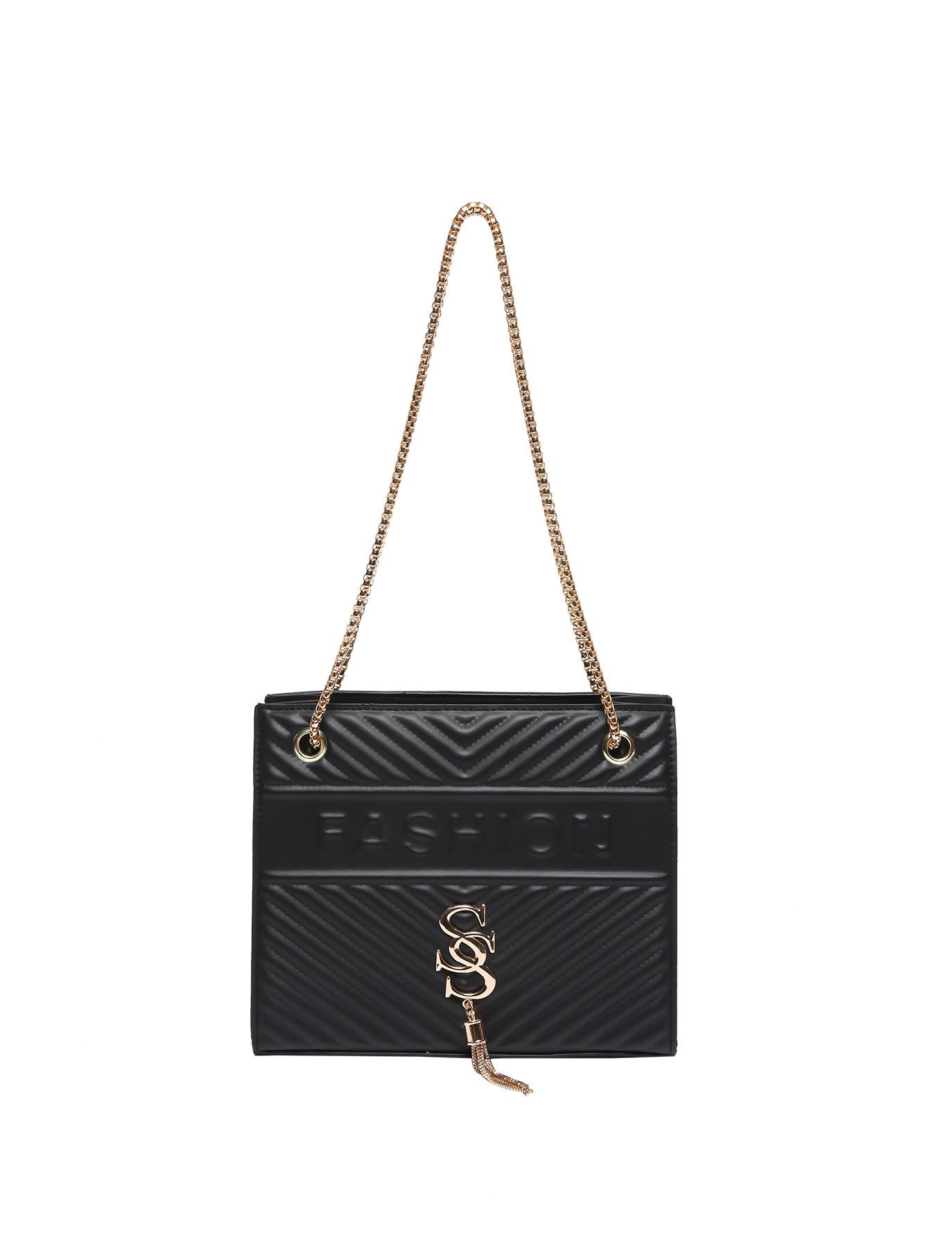 Большая вместительная повседневная персонализированная модная женская сумка для поездок на работу 2024 года, летняя новая темпераментная цепочка на одно плечо с косым ремешком, маленькая квадратная сумка чёрный