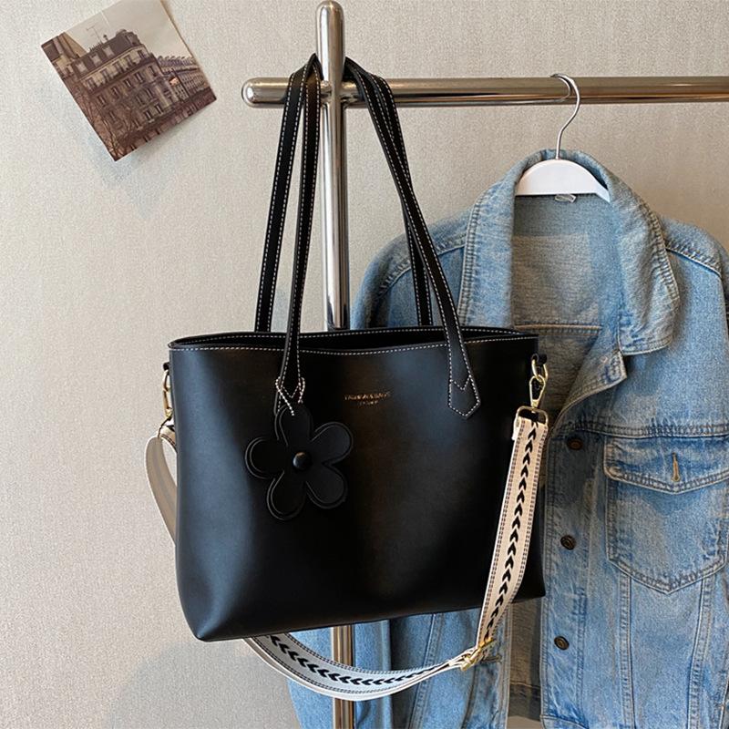 Большая вместительная сумка женская летняя универсальная 2024 новая простая широкополосная сумка-мессенджер текстурная сумка через плечо для поездок на работу No specification чёрный