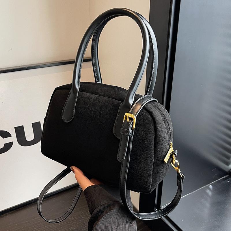 Большая вместительная сумка женская осенне-зимняя универсальная 2024 новая матовая ретро сумка через плечо текстурированная переносная сумка-подушка чёрный