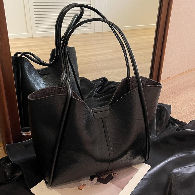Большая вместительная сумка женская осенне-зимняя универсальная 2024 новая ретро простая сумка через плечо женская классическая сумка-тоут для поездок на работу чёрный