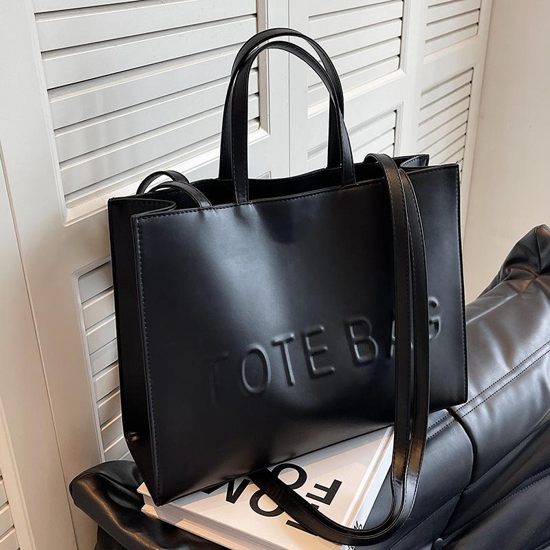Большая вместительная сумка женская простая и универсальная сумка через плечо текстурная портативная сумка для поездок на работу No specification чёрный