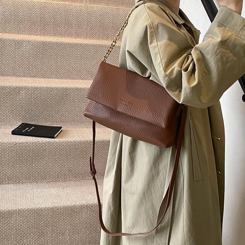 Большая вместительная сумка женская ретро простая премиум складная сумка через плечо с цепочкой для ушей маленькая квадратная сумка подмышкой темно-коричневого