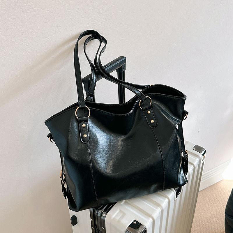 Большая вместительная сумка женская 2024 осень новая большая сумка через плечо ниша портативная студенческая сумка для поездок на работу чёрный
