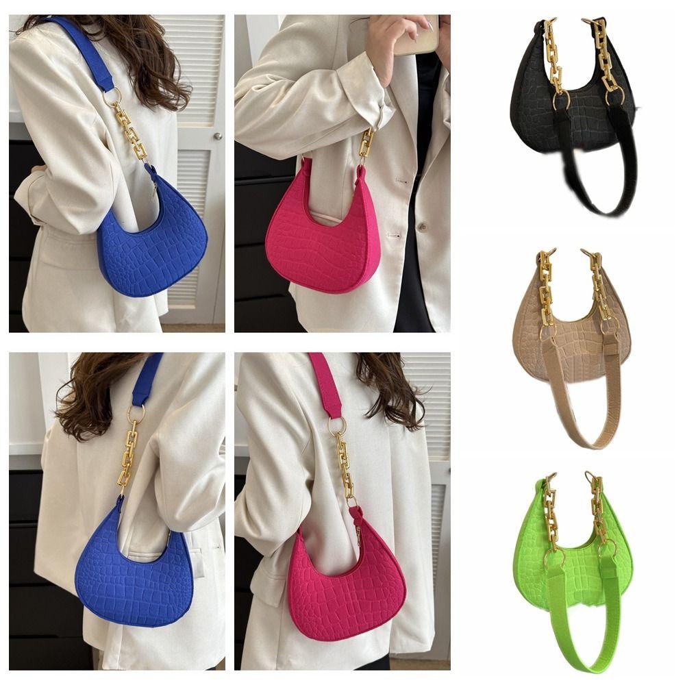 Большая вместительная сумка через плечо с цепочкой, фетровая сумка, модная женская сумка в форме луны