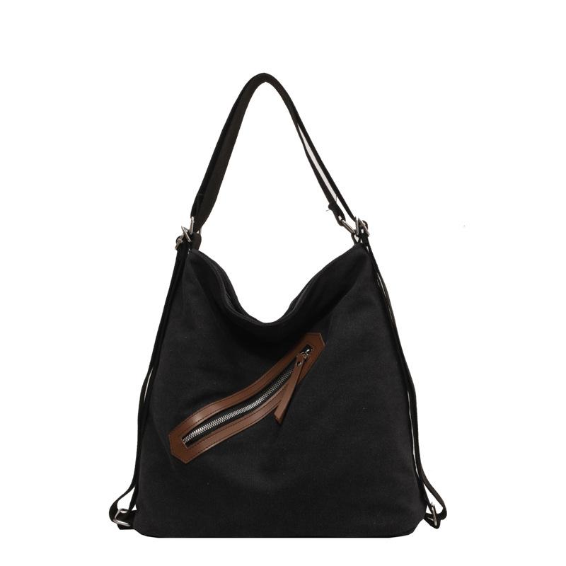 Большая вместительная холщовая сумка через плечо для женщин чёрный