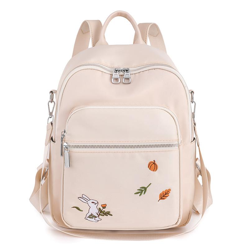 Большая емкость вышитая сумка через плечо Студенческий школьный рюкзак для путешествий на открытом воздухе бежевый
