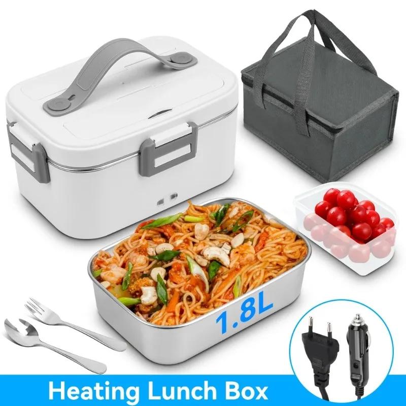 Большая емкость 1,8 л портативный электрический ланч-бокс 80 Вт подогреватель пищи 304 нержавеющая сталь съемная нагревательная чаша для автомобиля домашнего офиса AU белый