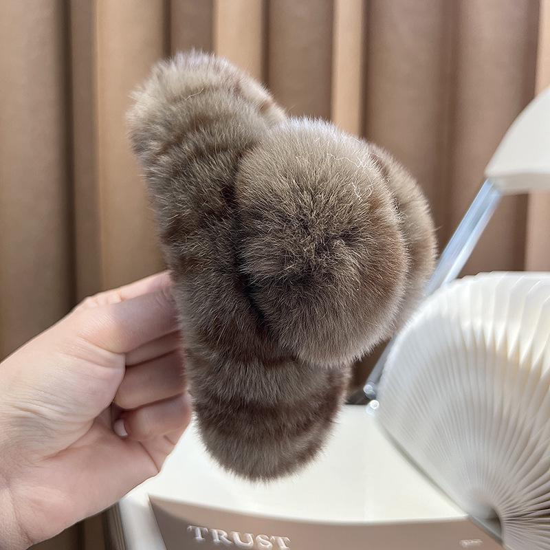 Большая заколка для волос из меха кролика Рекс - плюшевый головной убор для зимы