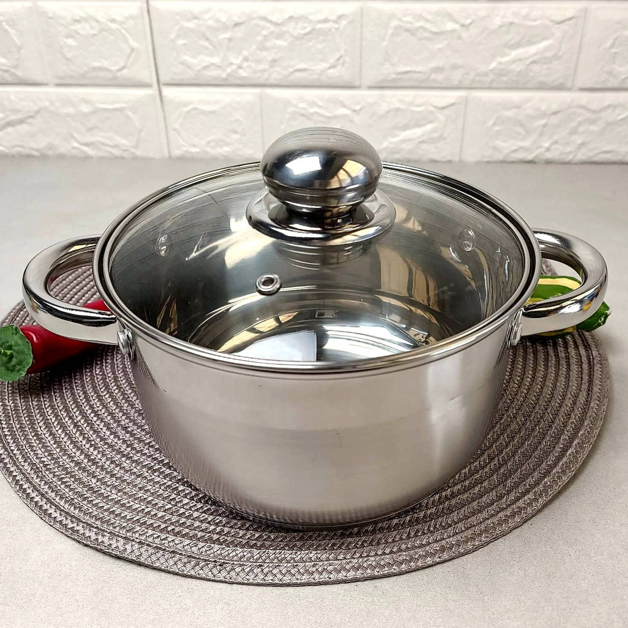 Большая кастрюля 6.1л из нержавейки для индукционных плит