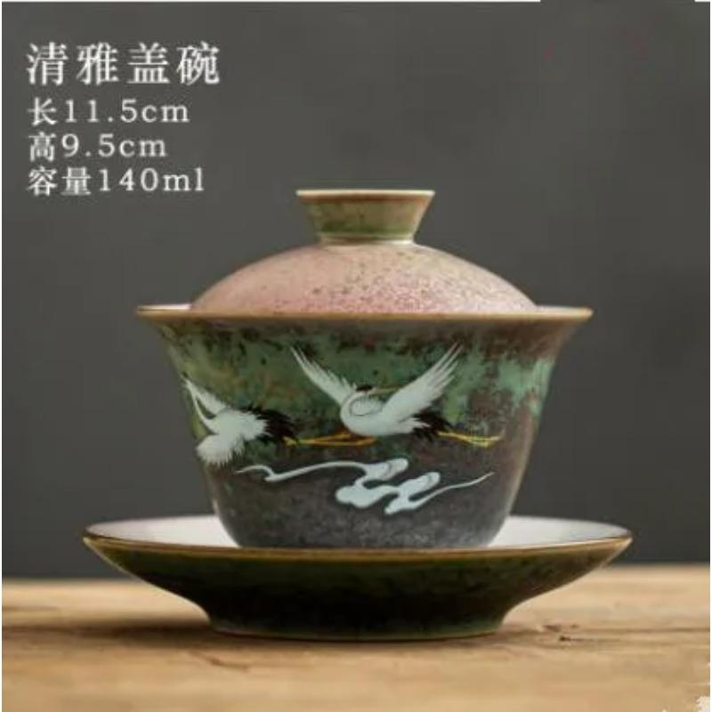 Большая керамическая чаша для чая с защитой от ожогов в стиле ретро с крышкой, одна чаша для чая Sancai Gaiwan, чаша с блестящей крышкой для крана с ручной росписью