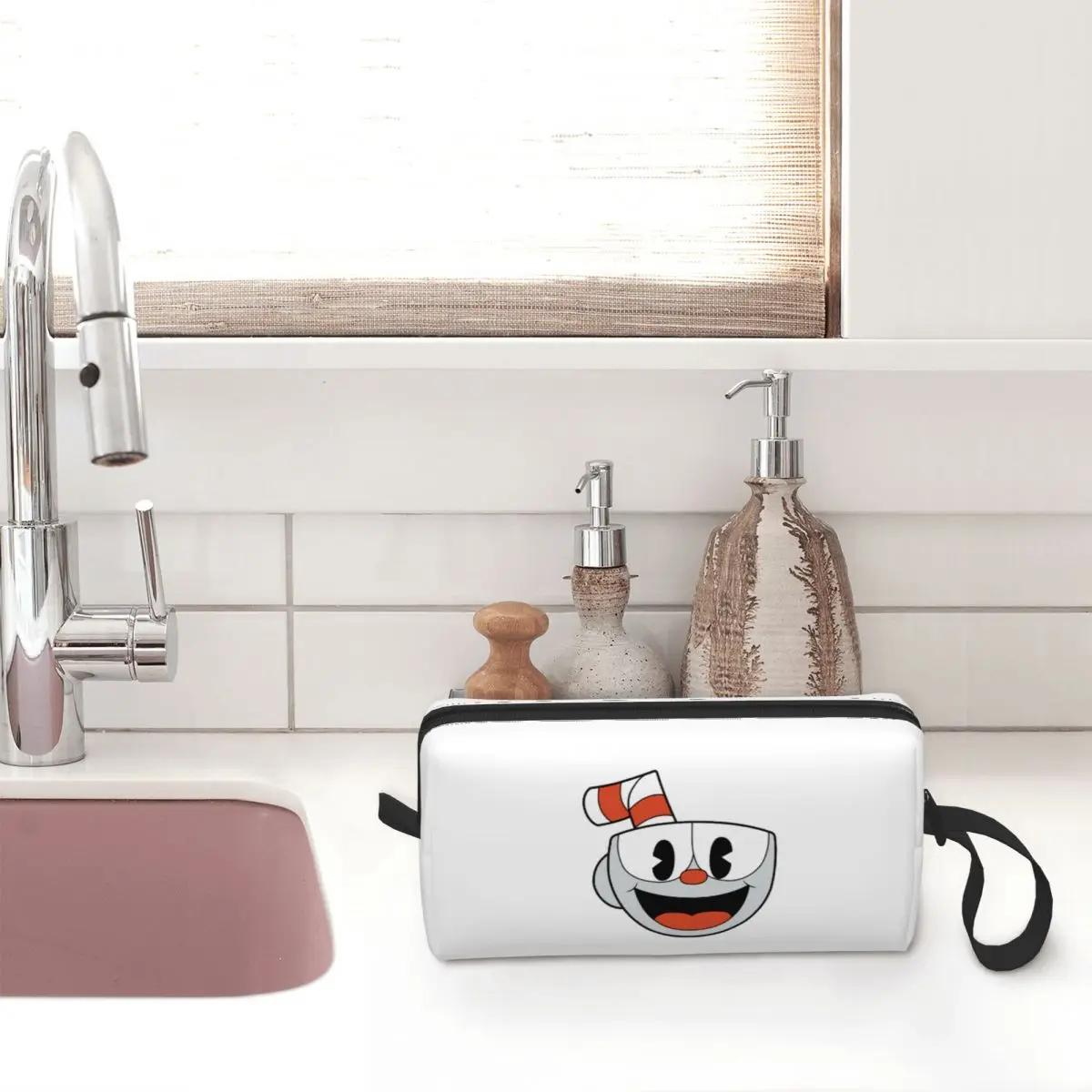 Большая косметичка Cupshot Cuphead, сумка на молнии, дорожные косметички, портативная косметичка для женщин