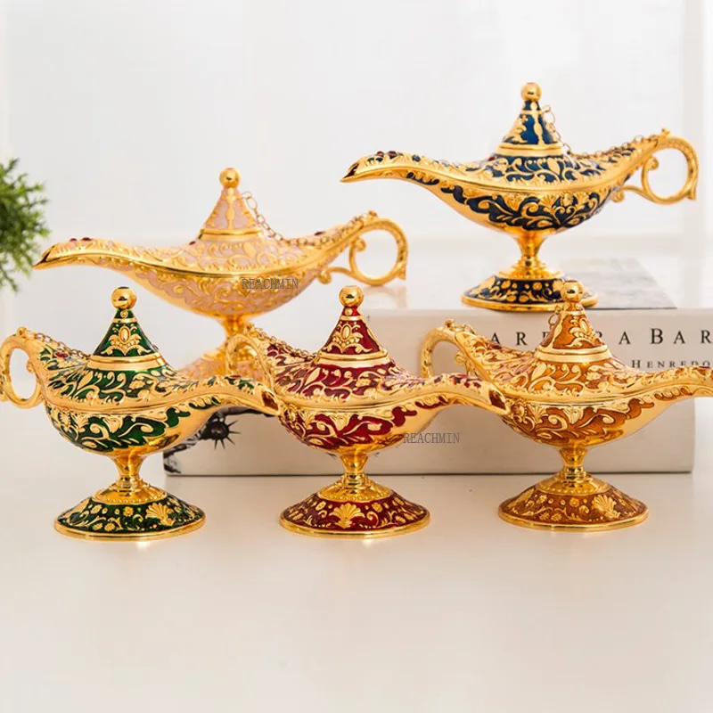 Большая матовая цветная металлическая волшебная лампа Genie, ретро масляная лампа, горшок, брендовая фотография, искусственный сувенир