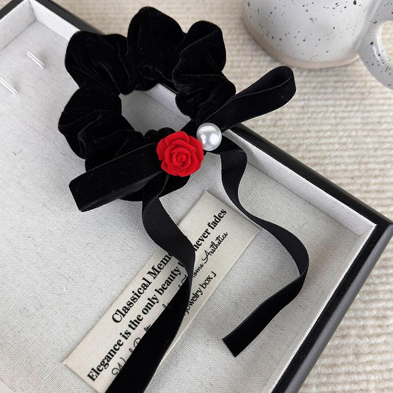 Большая резинка для волос с французской нежной розой, высокая эластичная прочная лента для волос, повязка на голову с бантом и бантом