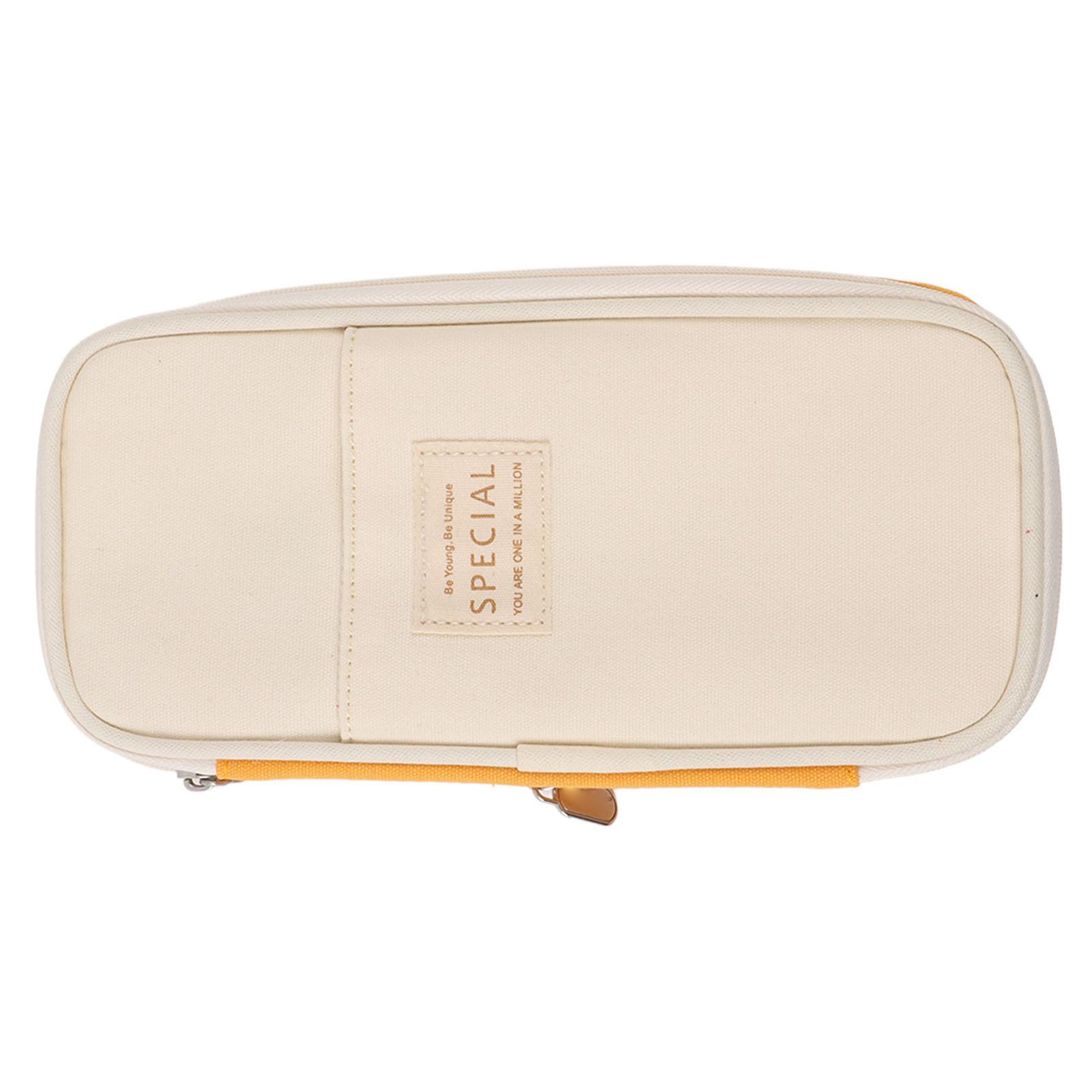 Большая сумка для ручек Простой стиль Холст Сетчатые карманы Отделения для ручек Плавная молния Большой пенал для