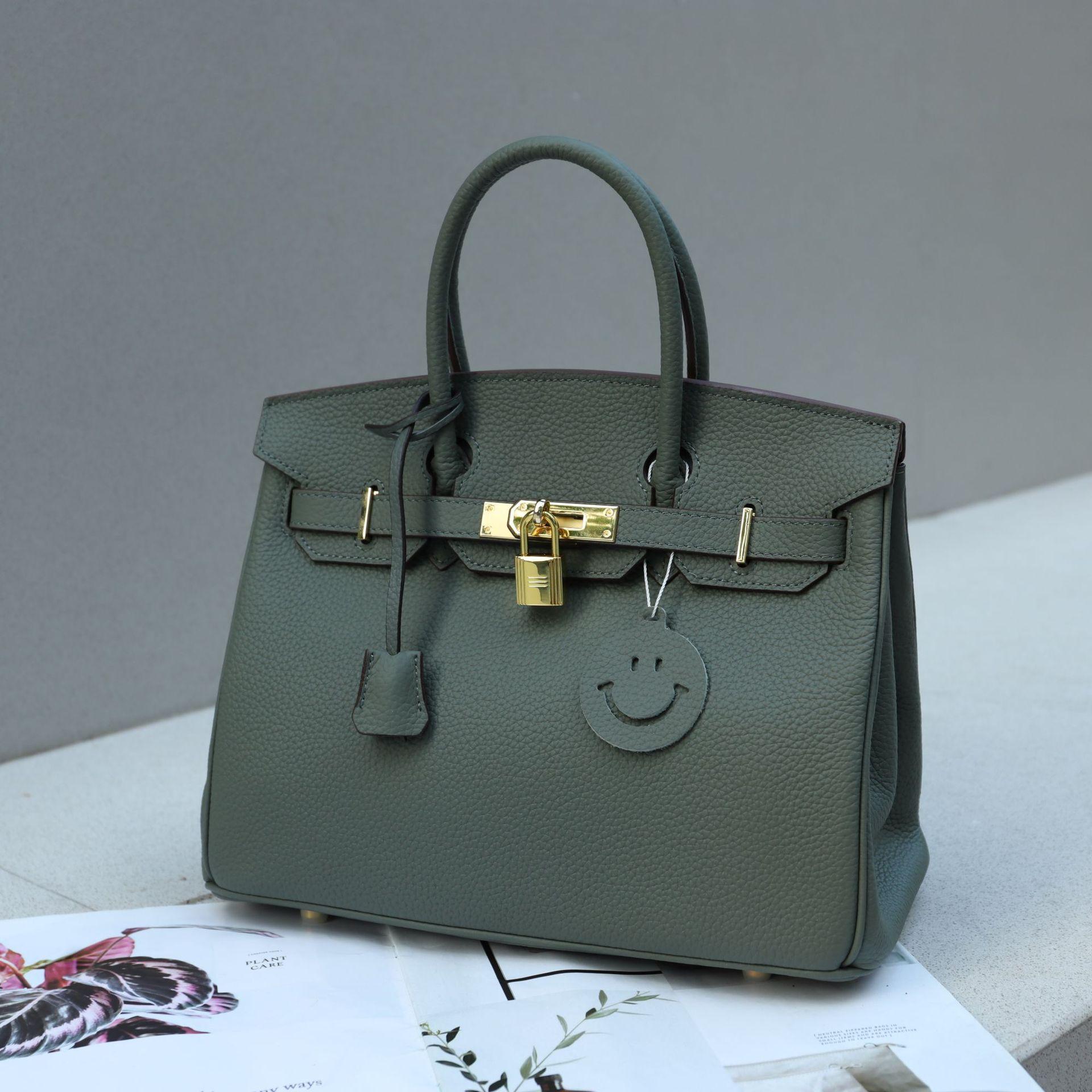 Большая сумка из коровьей кожи для женщин, новинка 2025 года, женская сумка из натуральной кожи, большая вместительная сумка, темпераментная сумка с узором личи, платиновая сумка 30x14x23cm армия зеленый