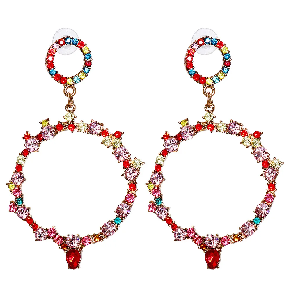 Большие Круглые Женские массивные висячие серьги, разноцветная Роскошная бижутерия для вечеринок, модные украшения, очаровательные висячи...