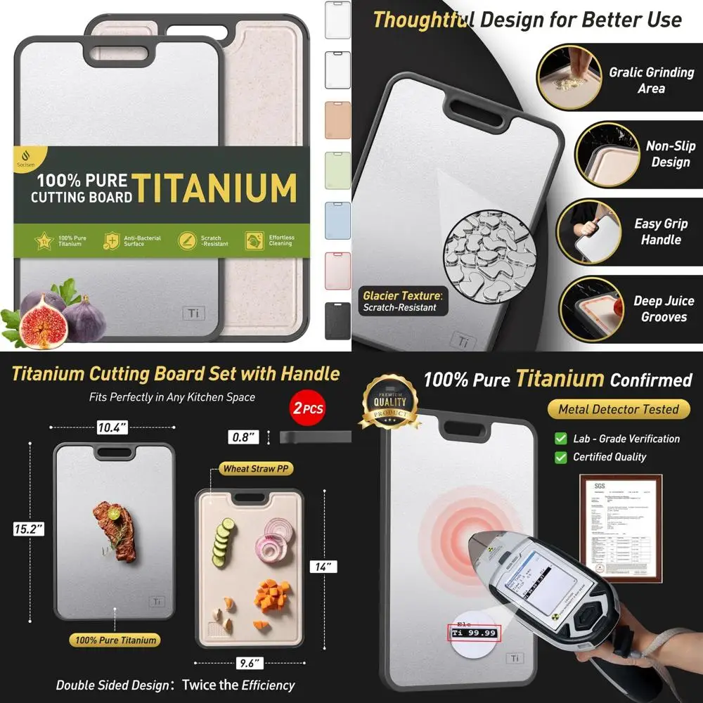 Большие кухонные титановые разделочные доски с ручкой — большой и маленький мясной блок 2-в-1, не оставляющий оставляет оставляет прочный серфинг