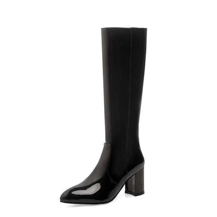 Большие размеры; Ботинки с острым носком на толстом каблуке; Женские зимние ботинки; Женская обувь; botas